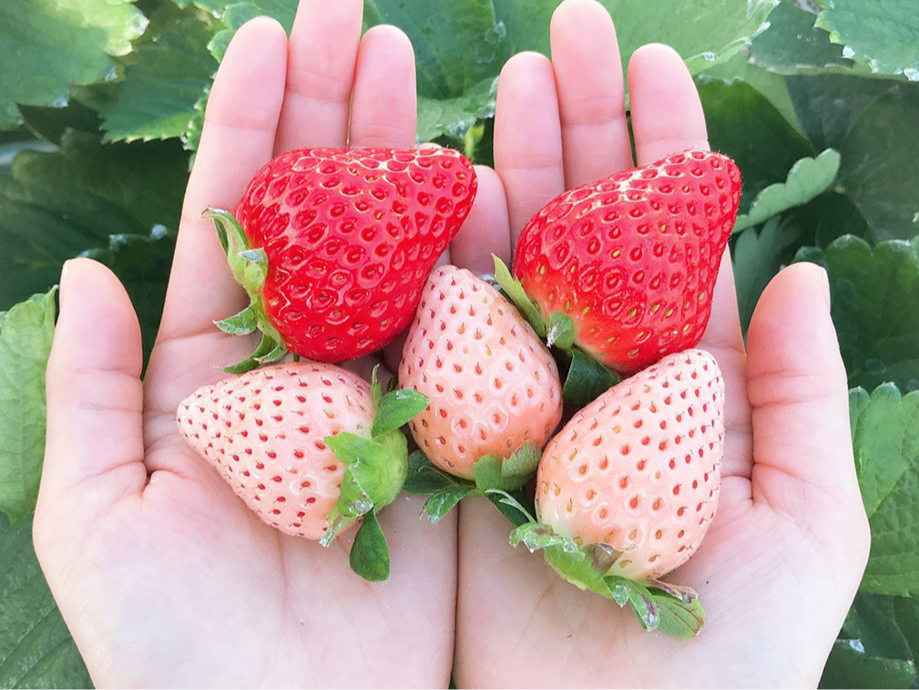 特に珍しい白いちごを栽培しており、「宝さがし」のようにいちご狩りが楽しめるのも魅力です。